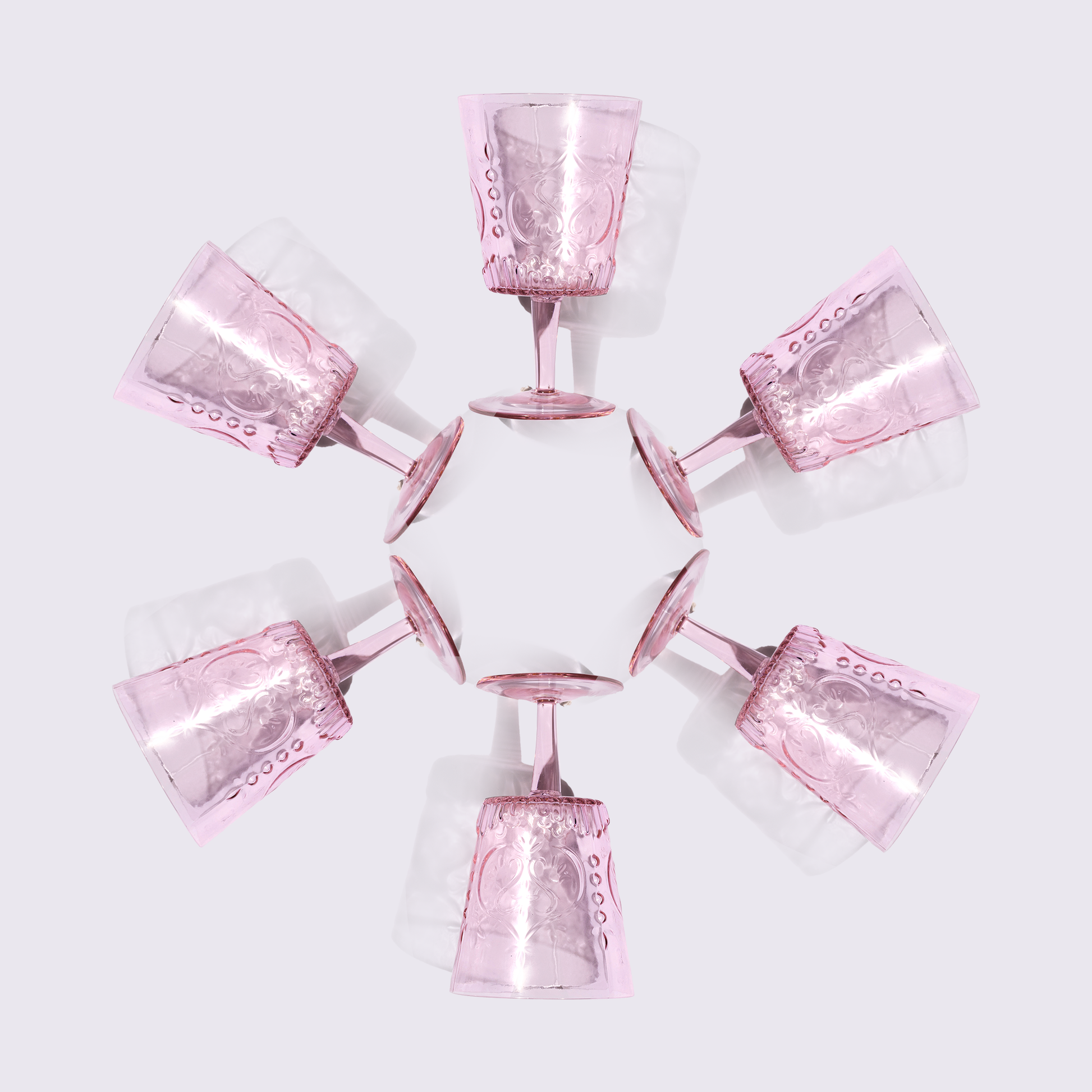 JUEGO DE COPAS DE VIDRIO 6 PIEZAS COLOR ROSA BABEL