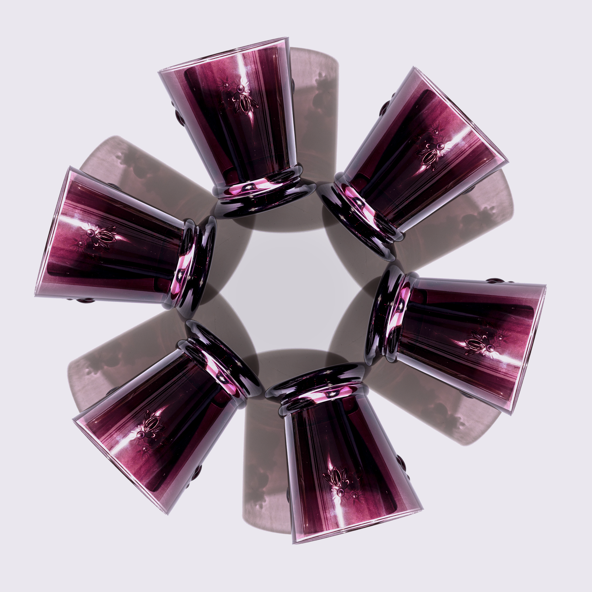 JUEGO DE VASOS DE VIDRIO ABEJITA 6 PIEZAS COLOR MORADO BABEL